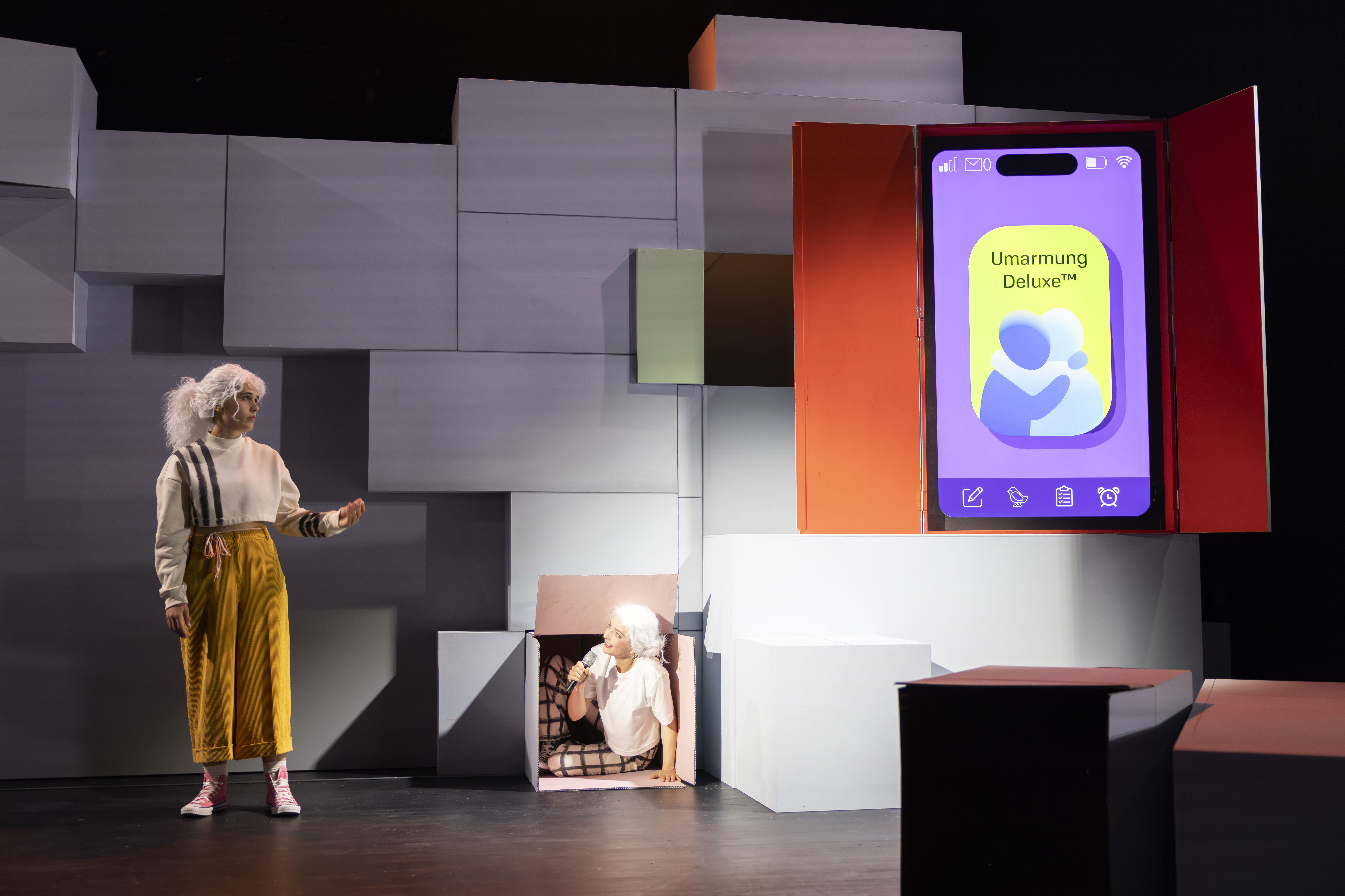 Na gestresst? Ist manchmal einfach alles zu viel? Stress ist nicht nur unfair sondern auch – Surprise! – ungesund also STRESS DICH NICHT!!! Sehr viel leichter gesagt als getan und darum geht es in dieser Stückentwicklung, inspiriert von Lucia Zamolos kreativer Überlebenshilfe Und dann noch… Eine junge Heldin, mitten im Chaos der Alltagsbewältigung – zwischen To-do-Listen, wichtigen Entscheidungen und nervigen Nachrichten. Oder auch: mitten im Kampf mit einem Wollnashorn. Da heißt es Flucht ergreifen oder Fäuste hoch. Zusammen ergründen wir die Ursachen von Stress und stellen uns ihm mit Mut und Augenzwinkern entgegen. Und mit dem richtigen Soundtrack kann Stress sogar Spaß machen. Vor allem aber atmen wir zusammen einmal tief durch. Ein. Und Aus.